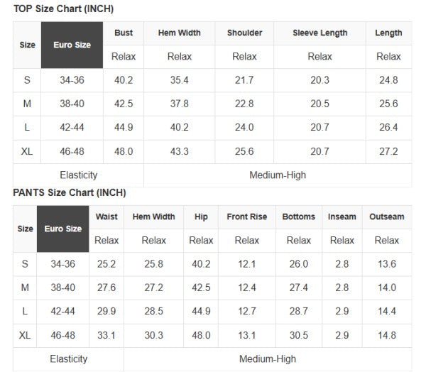 See size chart for approximate measurements.