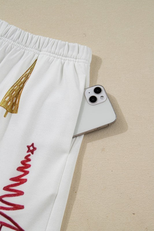 Get cozy in this playful two-piece lounge set featuring a soft round neck pullover and matching shorts. Decked out with a charming pattern, it brings festive fun to your downtime. The relaxed fit and drop shoulder design promise easy comfort, while the elastic waistband ensures a snug, flexible wear perfect for holiday lounging. 100% Polyester