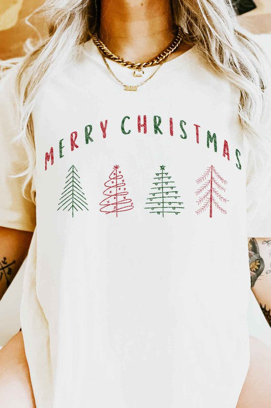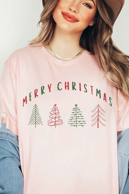 MERRY CHRISTMAS TREES GRAPHIC TEE