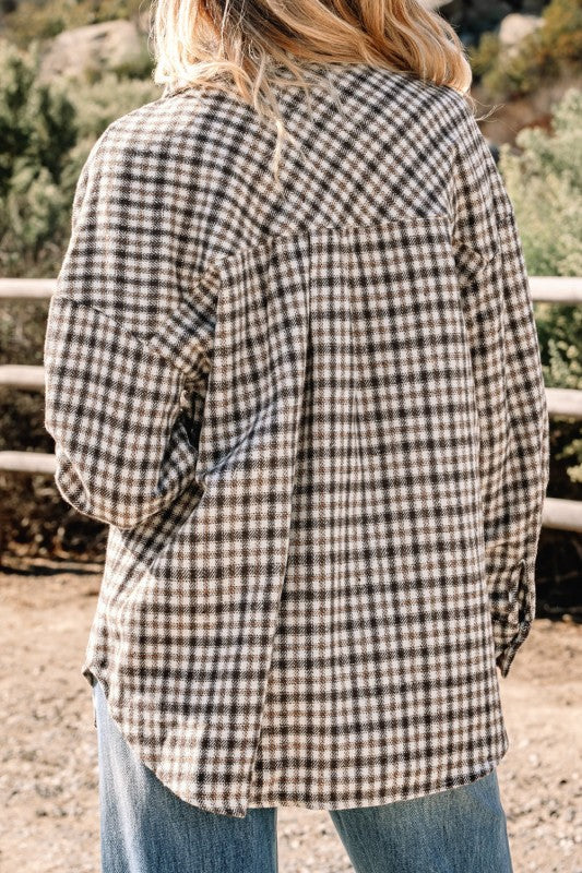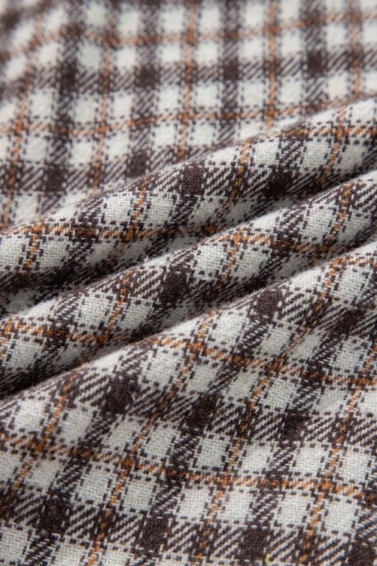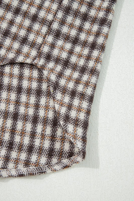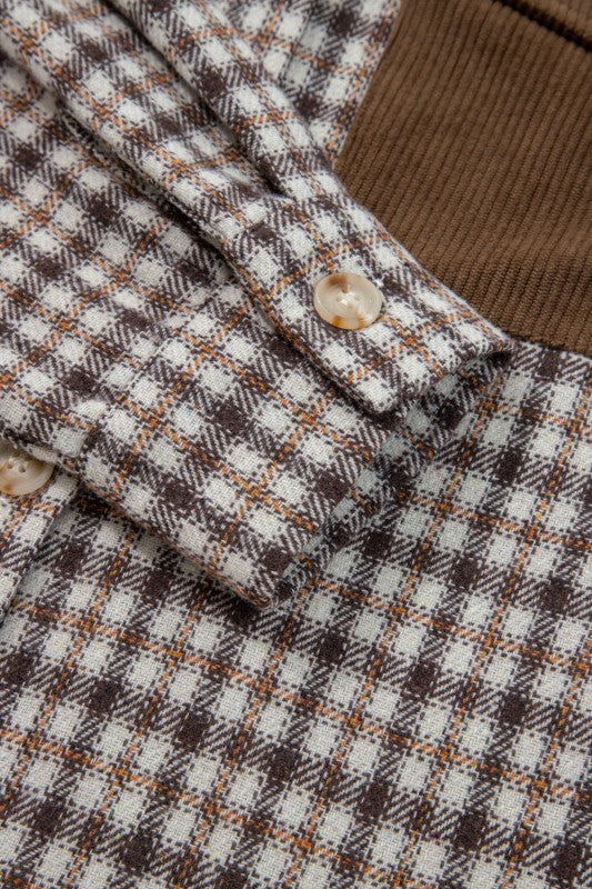 Plaid Corduroy Patchwork Pocketed Button-Up Shacke