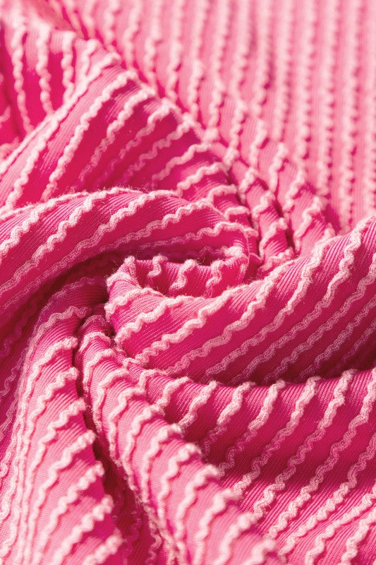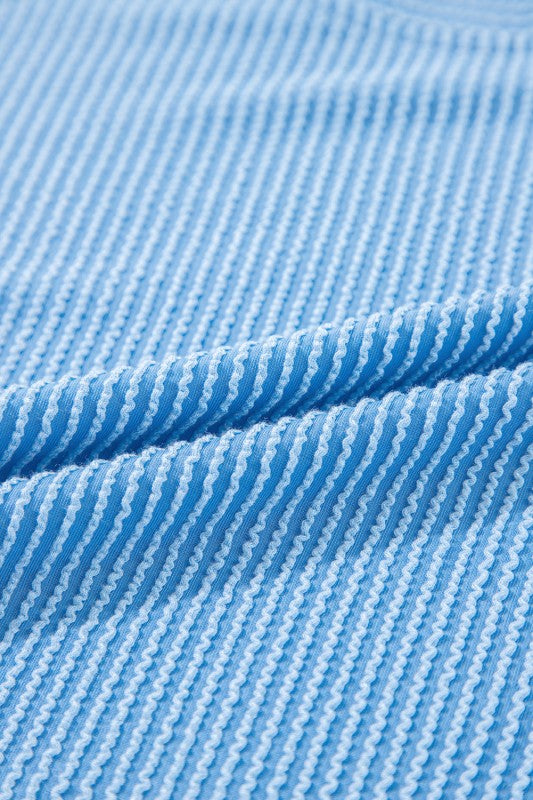 Enjoy playful comfort with this matching set, featuring a cozy short-sleeve tee and relaxed wide-leg pants. The corded knit texture adds a unique twist, while the vibrant solid color keeps your look fresh and versatile. Perfect for lounging at home or stepping out in casual style, this set blends comfort and effortless flair. Polyester/Viscose/Spandex