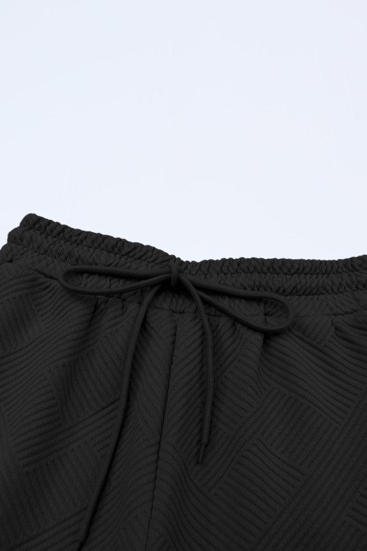 Stay cozy and stylish in this pants set. The relaxed fit ensures ultimate comfort, while the textured fabric adds a playful, chic vibe. With a drawstring waist, you can easily customize your fit for all-day ease. Perfect for lounging at home or stepping out with a casual, laid-back look that feels as good as it looks. Polyester/Spandex