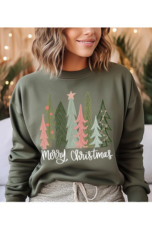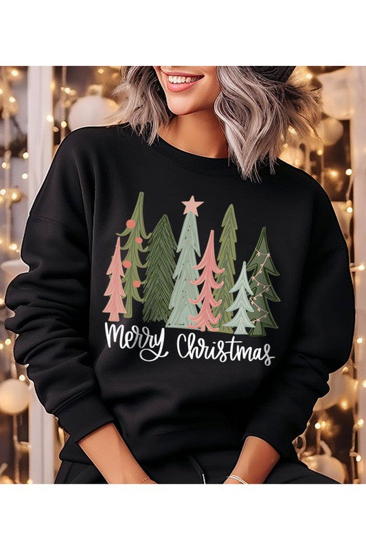 CHRISTMAS TREES,MERRY CHRISTMAS UNISEX FLEECE SWEATSHIRT,GRAPHIC TEE,GRAPHIC TSHIRTS,TSHIRTS,TEES