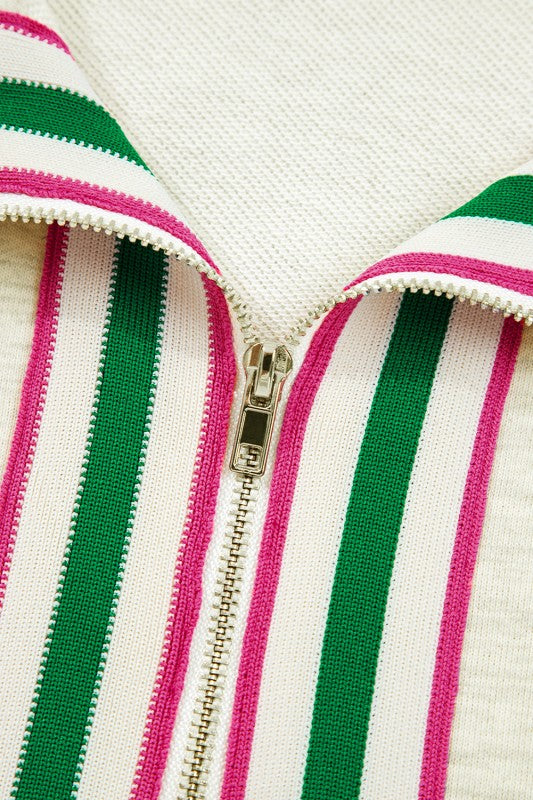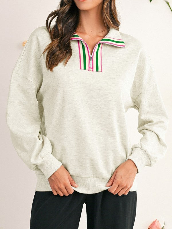 Cotton Stripe Collar Patchwork Pullover Sweatshirt