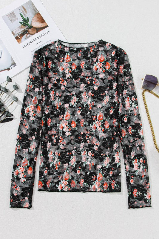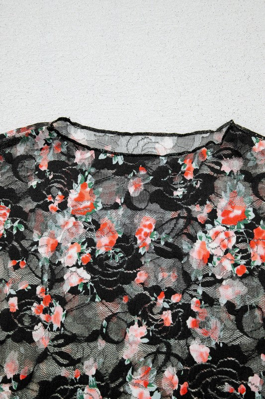 This top combines romance and charm with its delicate sheer fabric and lovely pattern. The flattering fit and playful lettuce-edge trim add a flirty touch that’s perfect for date night or spicing up your everyday look with a hint of allure. Polyester/Spandex